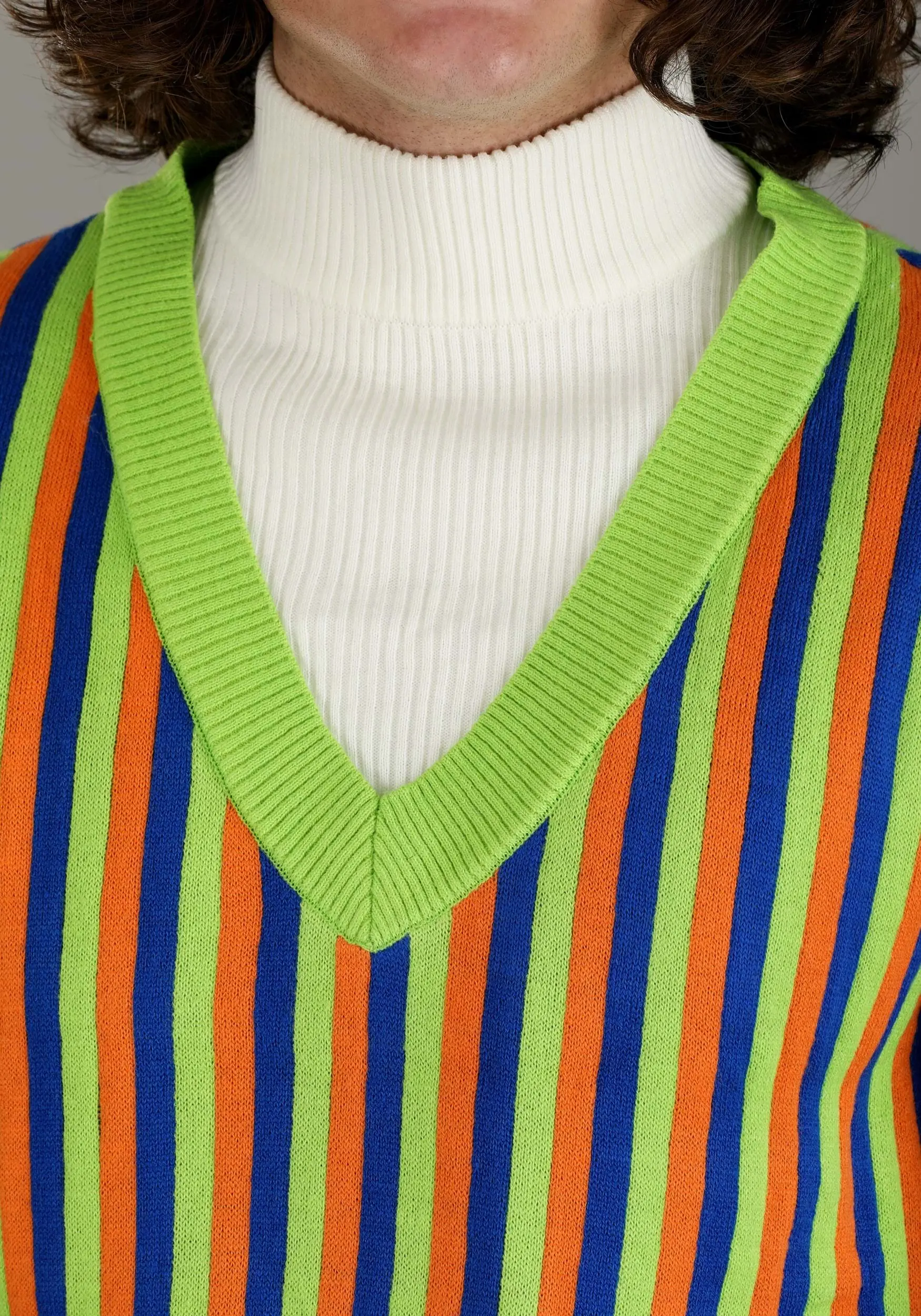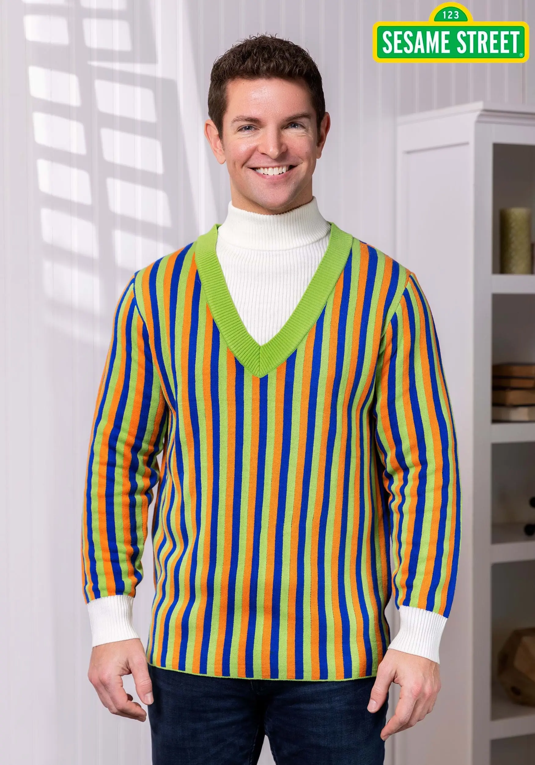 Stand taller than most when you wear this officially licensed Sesame Street Bert Cosplay Knit Sweater. This acrylic pullover is inspired by the iconic horizontal stripes of the yellow muppet! White cuffs and a sewn-in turtle neck top allow this single article to look layered, making for an easy-to-recognize transformation. Pair this with our matching Ernie sweater for an amazing group look or simply sport this stellar sweater for a night out on the town!