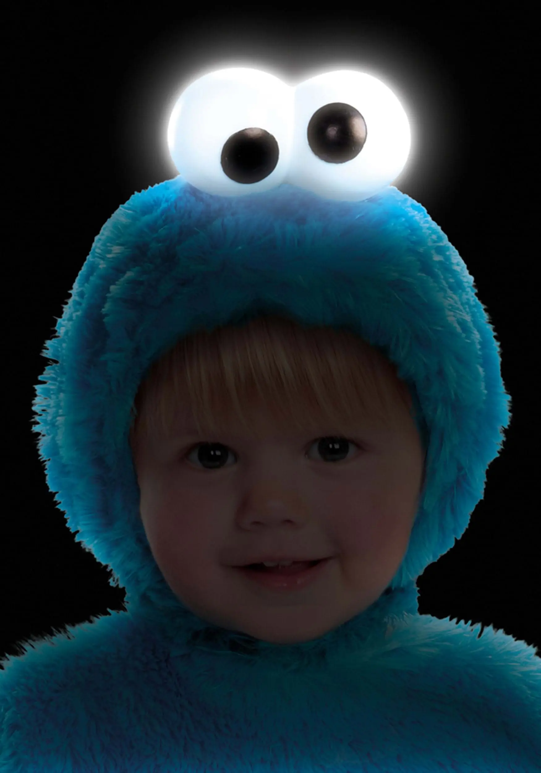 Does your kiddo have a passion for cookies? Who doesn’t, really? As adults, we just learn a little more about self-restraint (AkA: holding back from buying more than 2 dozen boxes of Girl Scout cookies per member of the household). But before you step into adulthood, there’s a fun brand of freedom to the way kids show passion for treats. Kids aren’t ashamed to go above and beyond to get another chocolate chip cookie. Turn your back and you might be shocked to turn back and discover that your toddler has climbed onto the counter and is… well… toddling on tiptoes to reach their sugary goal. Kids will behave for cookies and misbehave for cookies. That’s a sweet, sweet double-edged sword you’ve got in your parenting arsenal. If cookies make your child’s eye light up, lean into it this Halloween with this Cookie Monster costume with literal light-up eyes!