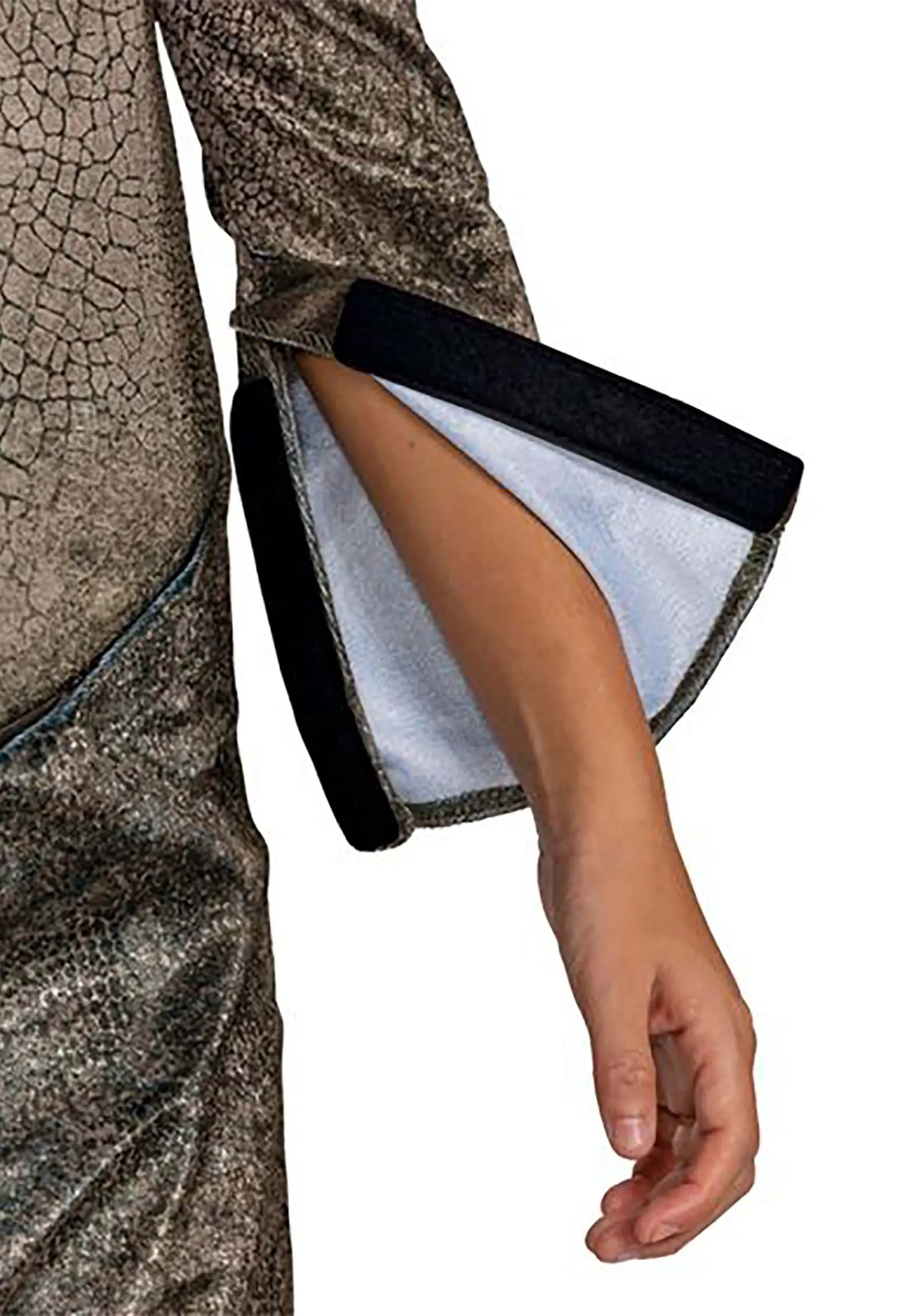 Become the predator that every other dinosaur feared in this officially licensed Jurassic World T-Rex Adaptive Costume! The one-piece jumpsuit is made of comfortable and breathable one hundred percent polyester. Its design features simple-to-fasten openings for ease in dressing and for abdominal access. It’s printed all over with a varying pattern of dinosaur scales in shades of tan, brown, and even hints of green. The hood fastens under the chin and has an opening for the entire face. The top of the hood is soft-sculpted to look like a T-rex’s upper snout, complete with eyes, graphic details, and felt “fangs!”Â