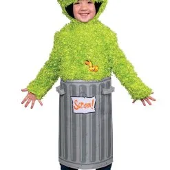 If your kiddo loves Sesame Street than this licensed costume is sure to be a hit! The featured tunic has a soft, green faux fur top and foam trash can bottom. It’s simple to slip on over your kid’s clothes so they can stay warm and itch-free on Halloween night. It secures with a hook and loop fastener up the back to make changing nice and simple. Topped off with a sculpted hood featuring Oscar’s expressive eyes and bushy brows, your kiddo will be ready to stand their ground as an advocate for rubbish this Halloween!