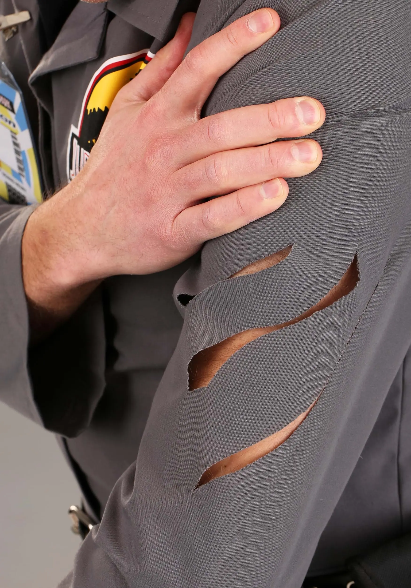 Slip into this exclusive Jurassic Park Employee Costume for Adults and be instantly tranformed into a privileged person who sees incredible animals on a daily basis. Your friends will beg you to take them to work with you – as long as you stay alive! The gray jumpsuit is super comfortable: perfect for lifting heavy feed containers or for running for your life. The “Jurassic Park” patch near the left collarbone gives that extra touch of authenticity. The orange hard hat with the matching logo keeps the uniform OSHA-compliant, but hasn’t been tested yet against Tyrannosaurus teeth. Oh well! We’ll probably never have to worry about that.Â