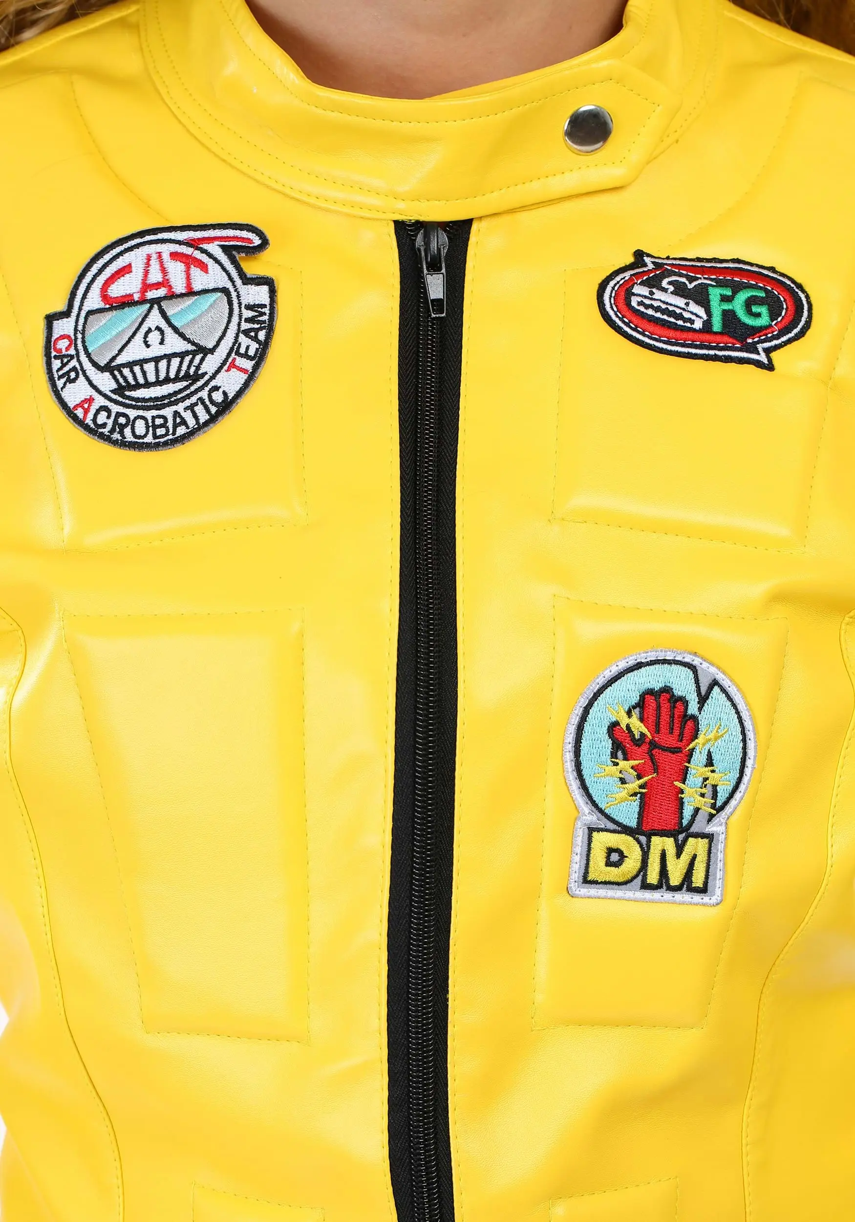This Beatrix Kiddo motorcycle suit comes licensed from Quentin Tarantino’s Kill Bill. The costume includes a yellow jacket with matching pants, inspired by the outfit worn by Uma Thurman in the film. The jacket has a zip-up front, along with buttons along the neck and waist. Each sleeve has black stretch fabric to allow a form fitting style, while pads in the front create a true motorcycle jacket look. Various patches are also sewn into the jacket for an authentic recreation of the style in the film. The matching pants also have black stretch fabric in each pant leg, while the waist fits with an elastic band. Both pieces combine for a look that’s made for a path of revenge. Say, “Hi” to the Crazy 88’s for us. Once you have this costume on, we have a hunch that you’ll bump into them.