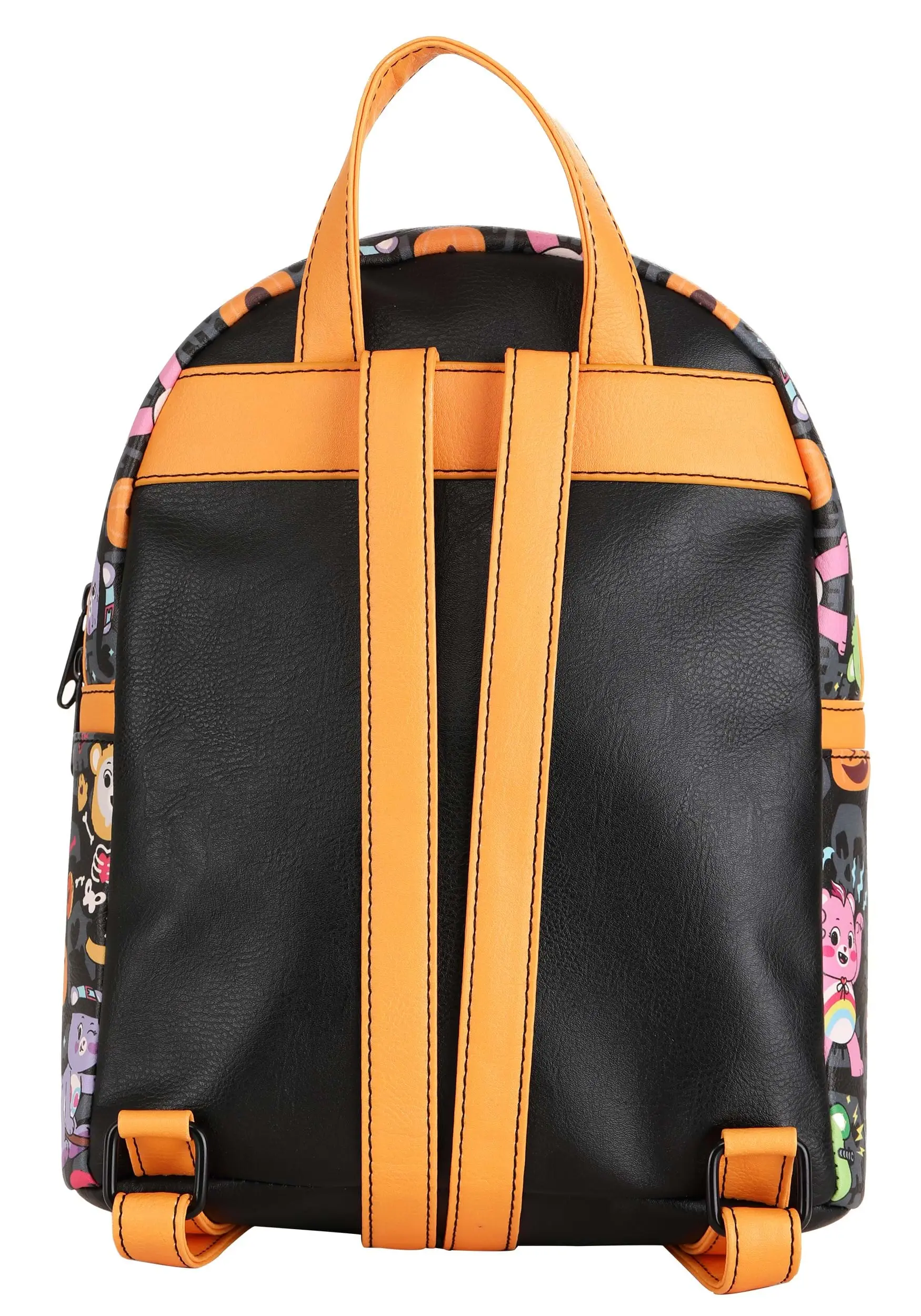 This Care Bears Halloween Mini Backpack is a Made By Us design with adorable style inspired by the Care Bears. It’s constructed out of a faux leather material with a fabric lining. The exterior has an all-over pattern of the bears on it, including Cheer Bear dressed up as a vampire, Good Luck Bear as Frankenstein’s monster, Share Bear as a witch, and Funshine bear dressed up as a skeleton.