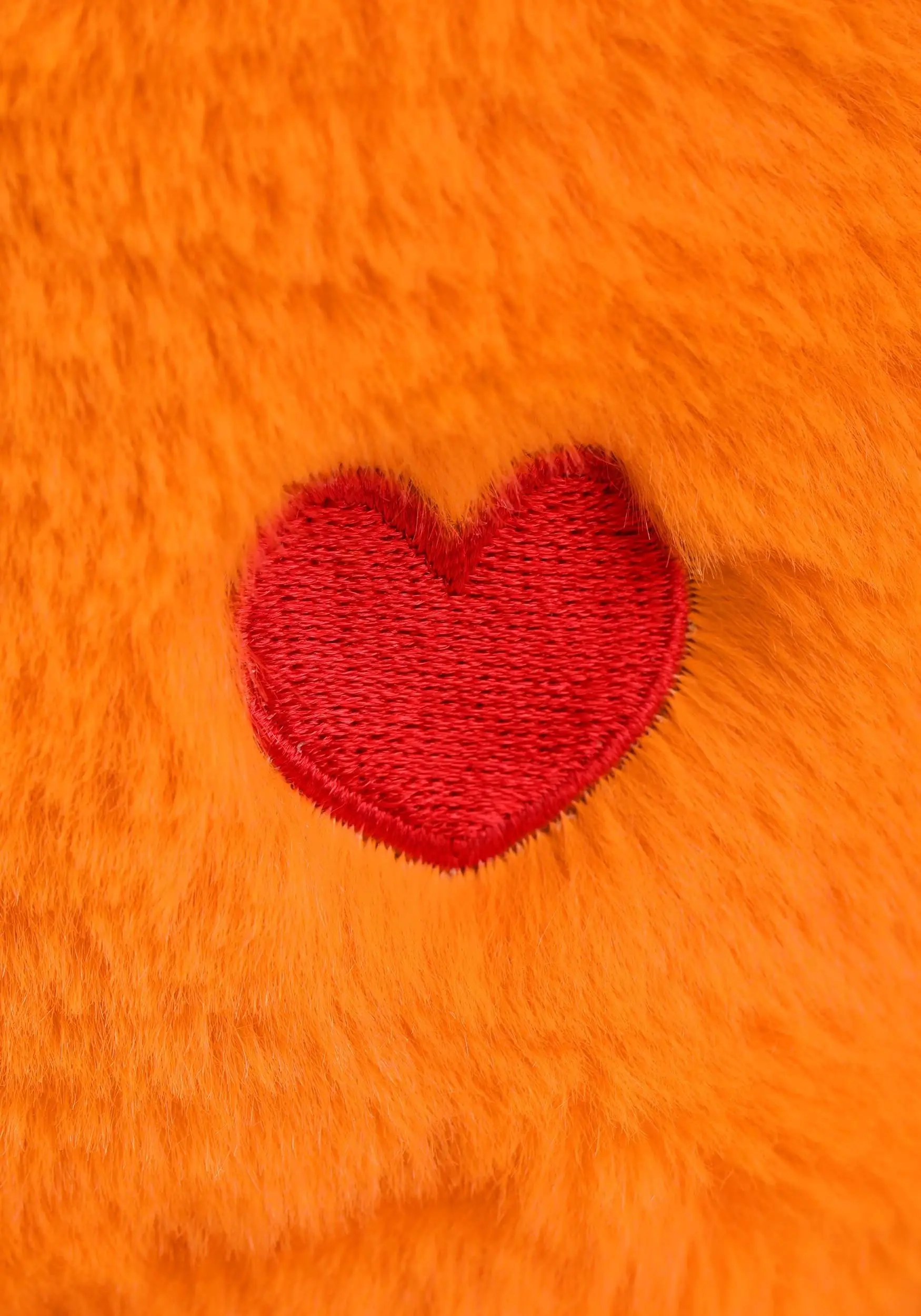 - Embroidered & soft-sculpted face, belly badge, hearts on feet